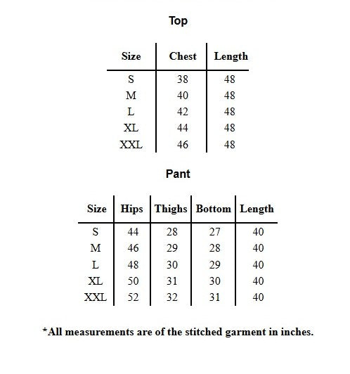 | 📐 Length | Top Length:- 48 Inch, Pant Length:- 40 Inch |