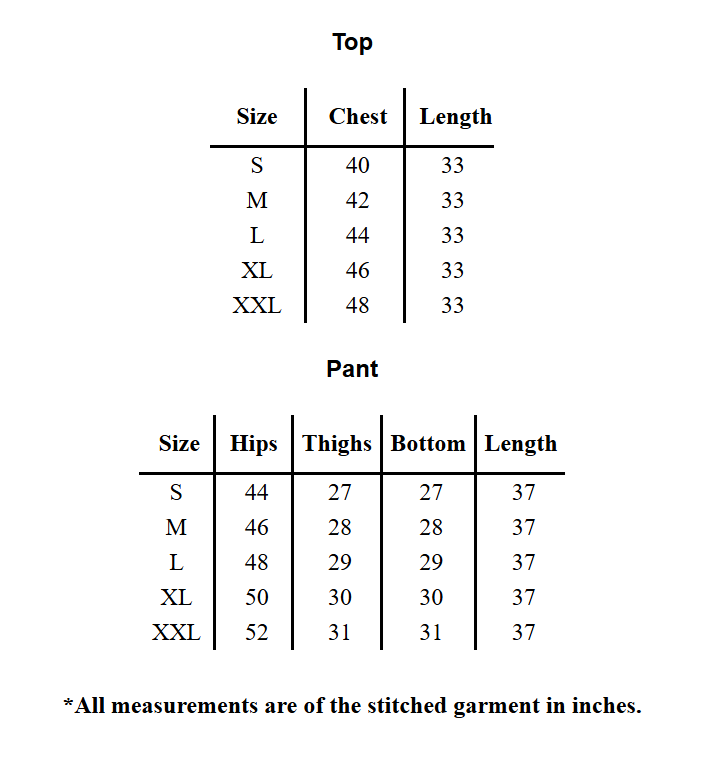 | 📐 Length | Top Length:- 33 inch, Pant Length:- 37 inch |