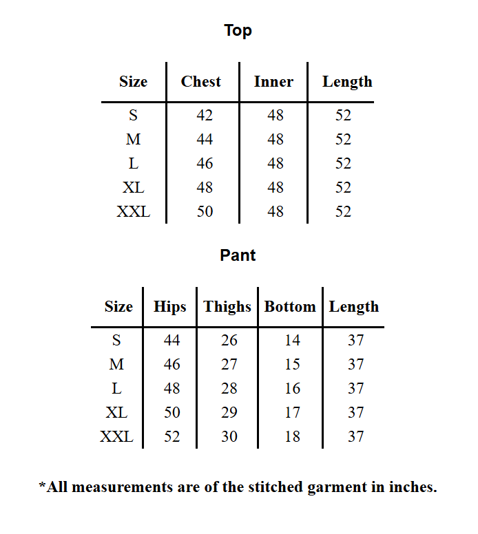 | 📐 Length | Top Length:- 52 inch, Pant Length:- 37 inch |