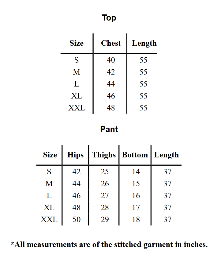 | 📐 Length | Top Length:- 55 inch, Pant Length:- 37 inch |