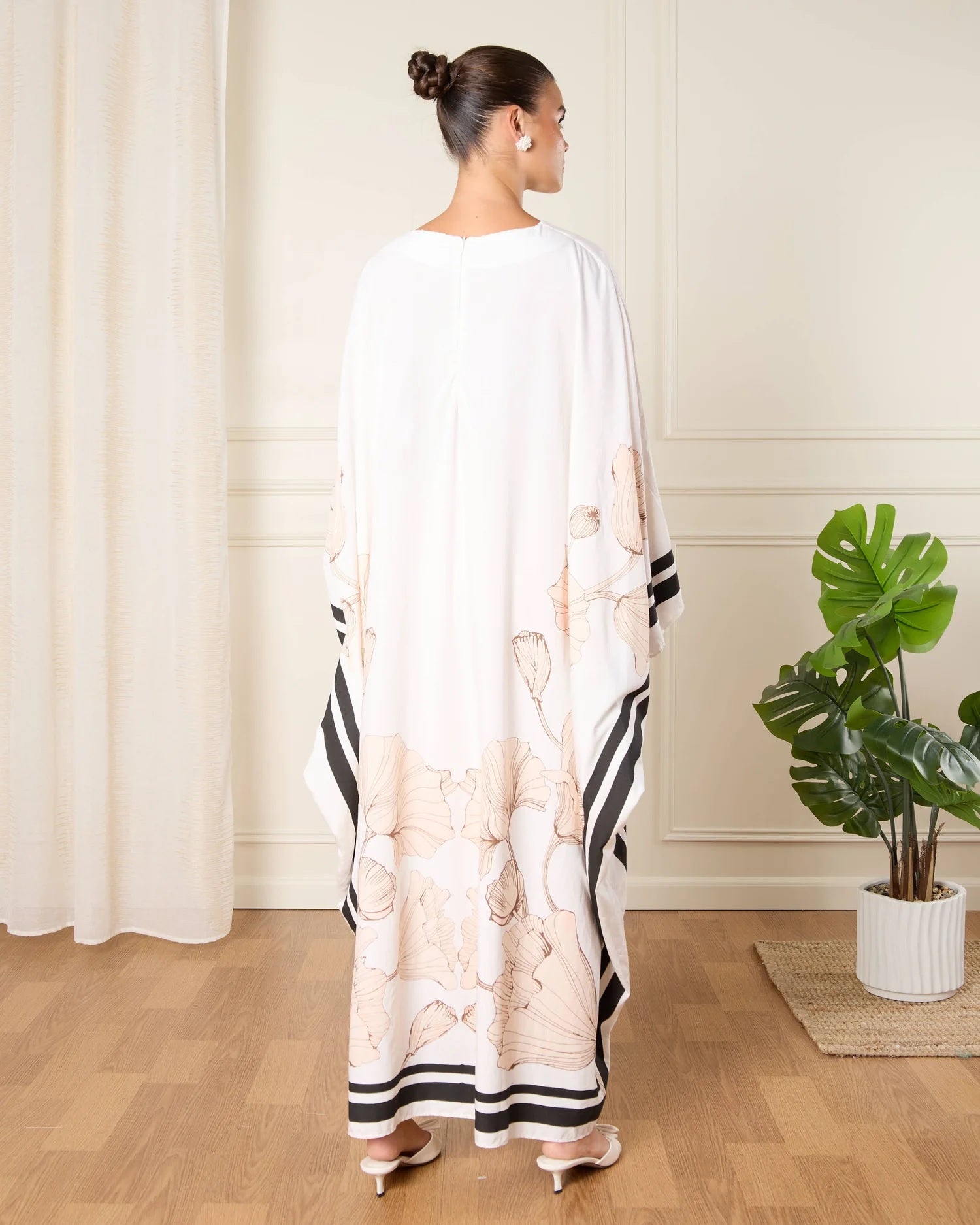 MONOCHROME PETAL FLOW KAFTAN DRESS
