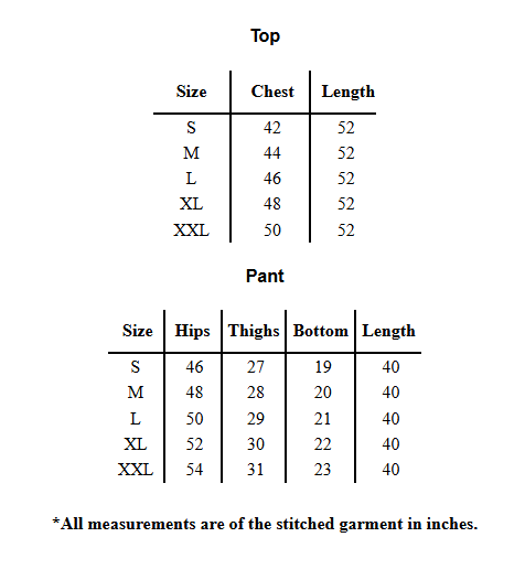 | 📐 Length | Top Length:- 52 inch, Pant Length:- 40 inch |