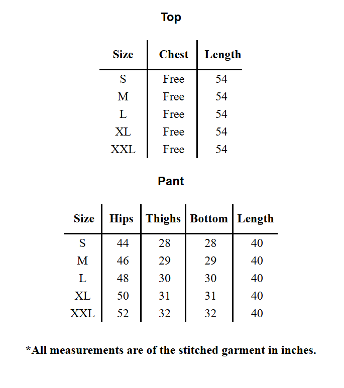 | 📐 Length | Top Length:- 54 inch, Pant Length:- 40 inch |