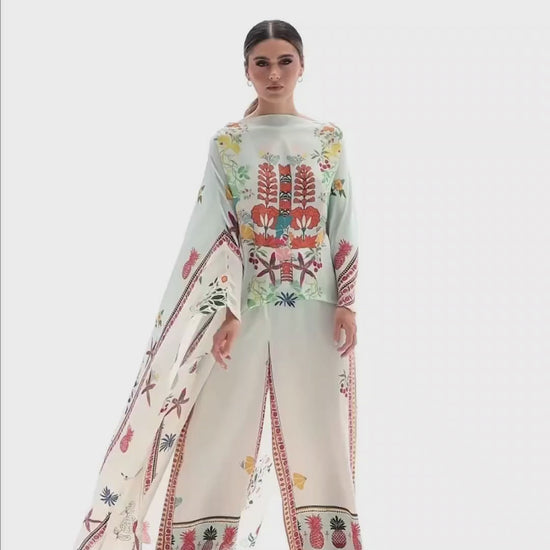 Ideal for both casual and semi-formal occasions, this set can be styled together for a coordinated and effortless look, or worn as separates to create multiple outfits. Whether you're heading to a garden party, a weekend getaway, or a chic daytime event, this Median Silk Crepe set promises to deliver elegance and ease.
